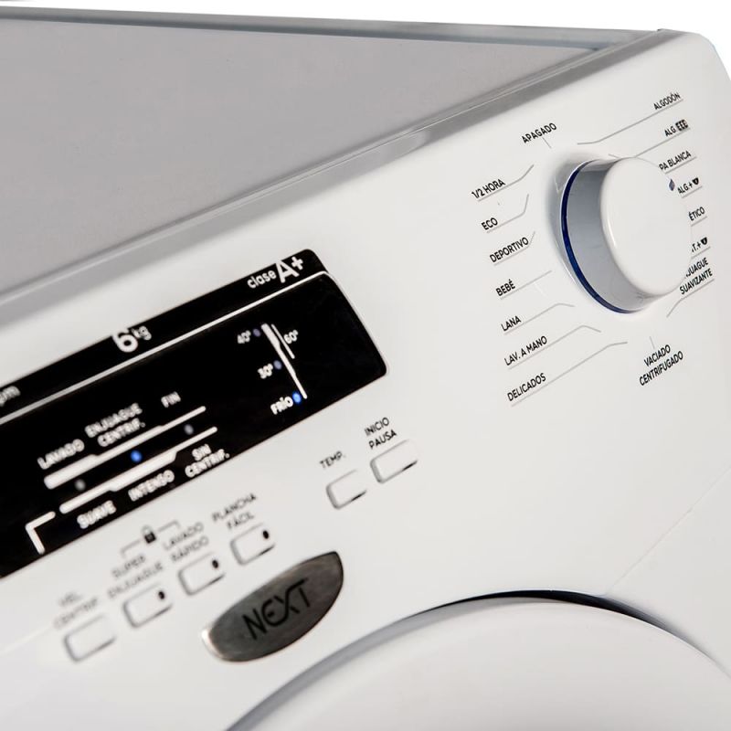 Con una capacidad de lavado de 6 kg y centrifugado regulable hasta 800 RPM, permite obtener prendas con menor humedad, reduciendo el tiempo de secado posterior.
